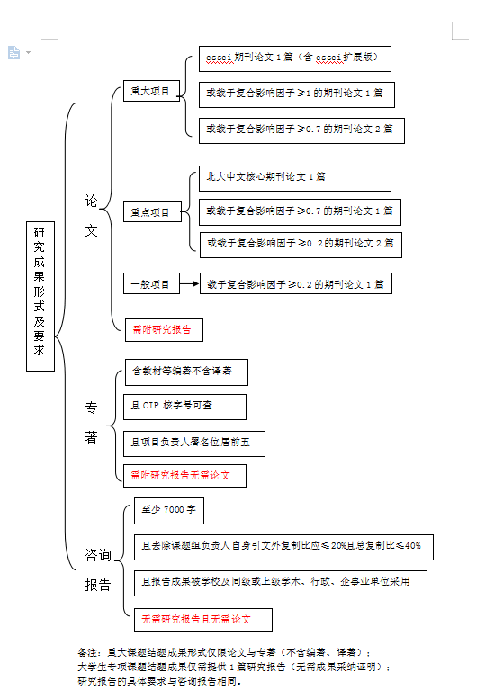 6.研究成果(无需纸质版,成果限5项以内<切勿超项>)。研究成果电子版格式:编著类成果要求提供CIP数据核字号查询页首页截屏图片与目录页扫描件,论文类成果要求在中国知网或国家哲学社会科学学术期刊等数据库全文下载(caj或pdf格式,不接收扫描与照片格式,论文需刊登在广电总局承认的学术期刊上,字数要求两个版面),证书类与意见采纳类成果要求为扫描件,成果电子版均不接收视频、ppt与程序类格式。大学生专项课题研究成果非必要条件。