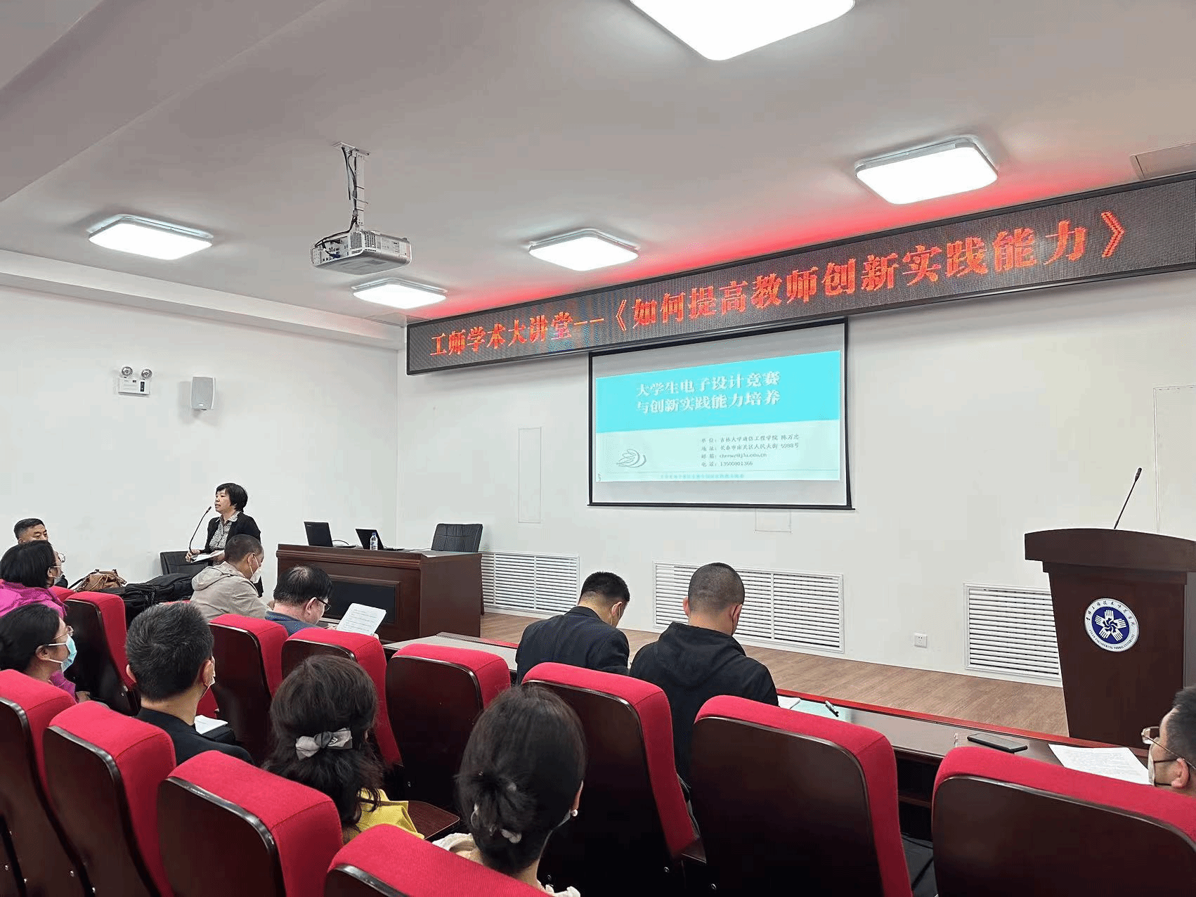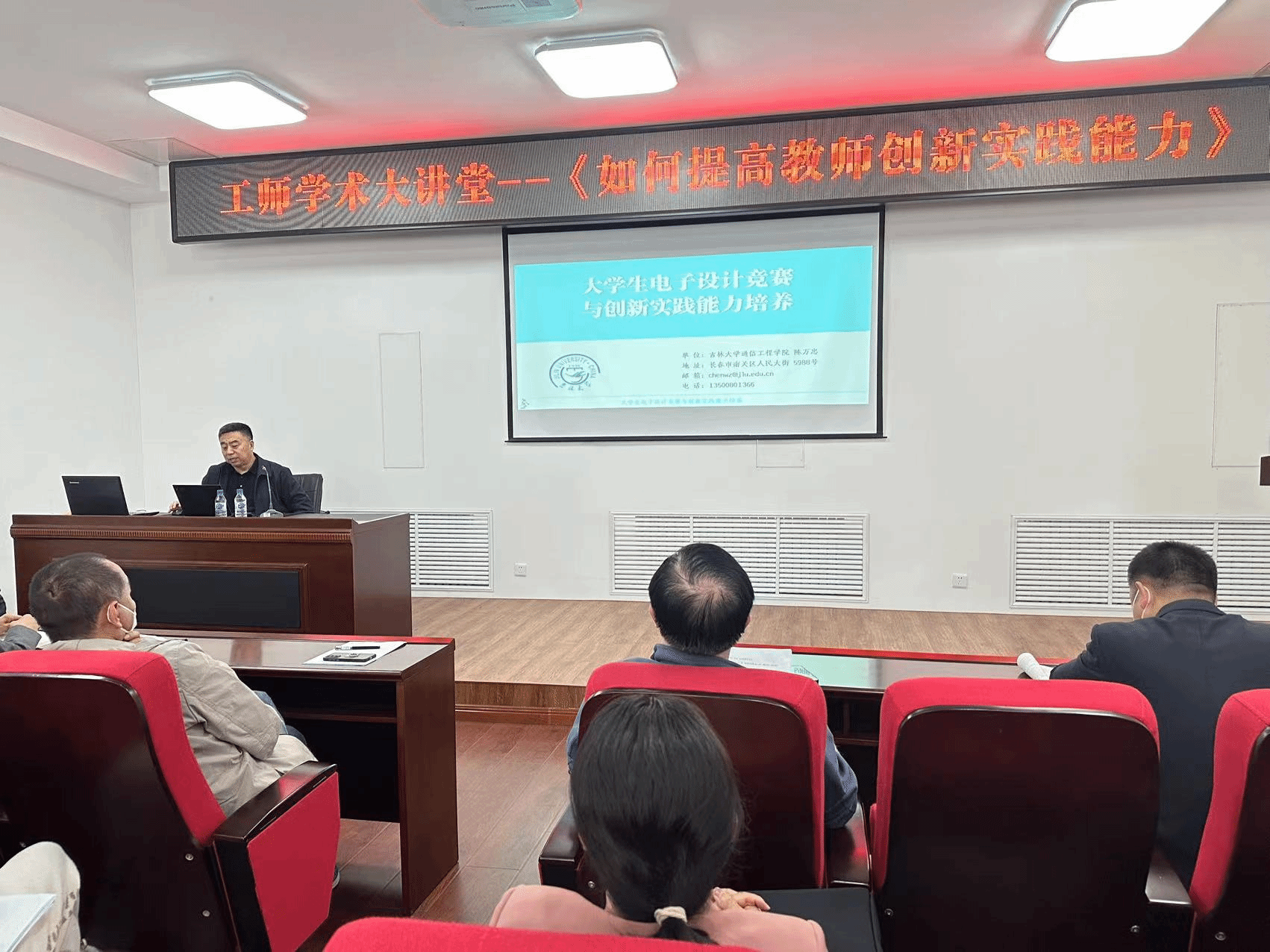 陈忠教授首先以大学生电子设计竞赛为切入点,分析提高教师创新能力的途径和方法,并通过列举参赛学生和指导教师成长的典型案例,为教师创新能力的提高找到学习的榜样;其次借鉴总结吉林大学、长春工业大学、吉林师范大学、长春工程学院、长春科技学院等高校提高教师创新能力的经验做法,总结出学生能力的提高,与指导教师的指导能力密切相关;最后建议学院通过双师双能实训室,建立一支指导能力较强的竞赛教师队伍,锻炼一批动手能力较强的参赛学生,形成一批优秀的实践教学改革成果。