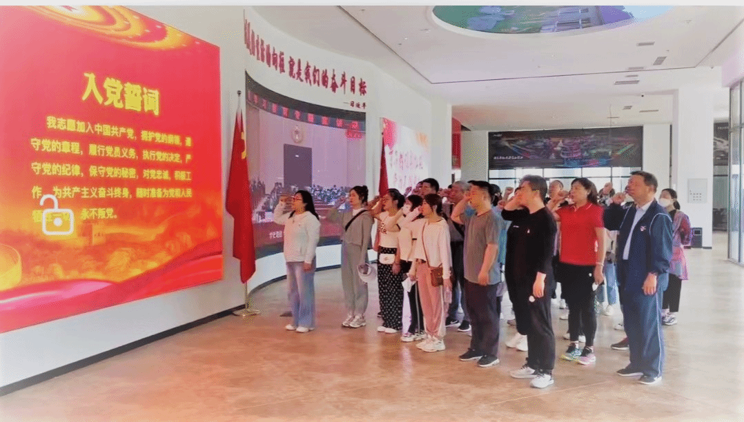 参观后,全体党员在教工第三党支部书记田佳同志的领誓下,庄严举起右手,重温入党誓词。