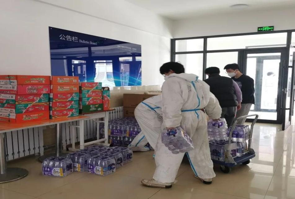 根据校区疫情管理政策,物资抵达当天进行消毒,静止24时后开始发放。4月16日,太阳集团城娱8722党委副书记鲍艳、副书记李克强带领学院志愿者共同运输物资。为了尽快将物资送到每位在校学生手中,物资抵达后,学生志愿者迅速打包运输至各公寓楼,在大家共同的努力下,物资以最快的速度发放给了每位同学。各楼层寝室长在保持安全距离的状态下,有序排队领取,保证五瓶矿泉水和一袋方便面发放到各个寝室及同学们手中。同学们对学院关怀表示感谢,纷纷表示收到学院的物资既惊讶又感动。在这春日的暖阳中,学院的举动和关心让封寝中的同学们心中又增添了共克疫情的勇气与信心。