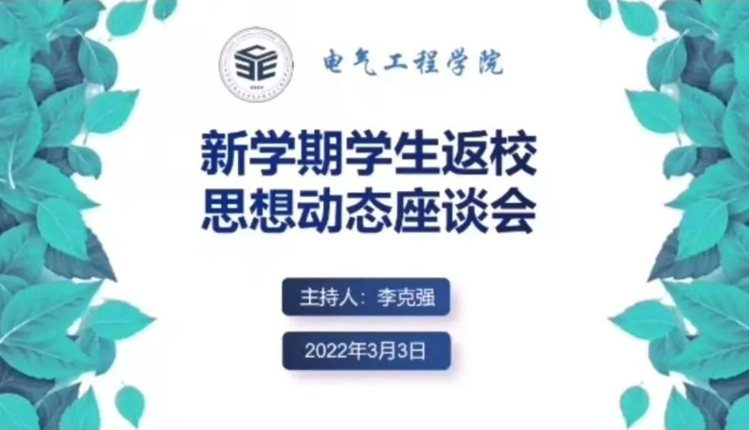为准确把握学生返校后的思想动态,及时了解学生诉求,电气工程学院于3月3日在线上举行了新学期学生返校思想动态座谈会。
