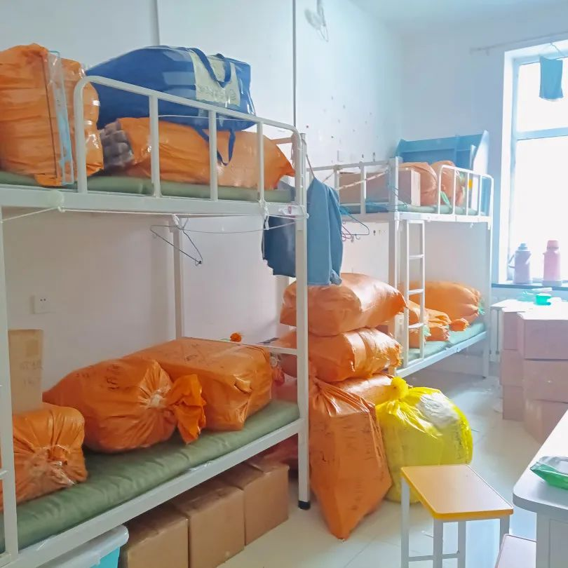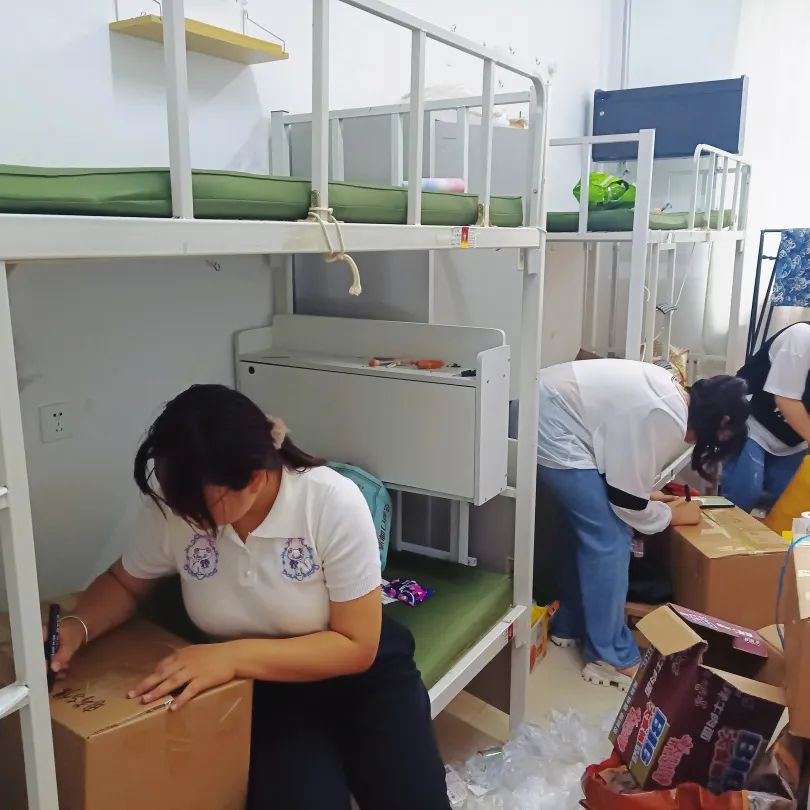 行动以宿舍为单位,老师及学生干部仔细询问同学们的物品打包需求,将其个人物品按照种类进行划分,用编织袋或纸箱打包。全程耐心沟通,尽力满足同学们的需求,帮助同学们打包行李。