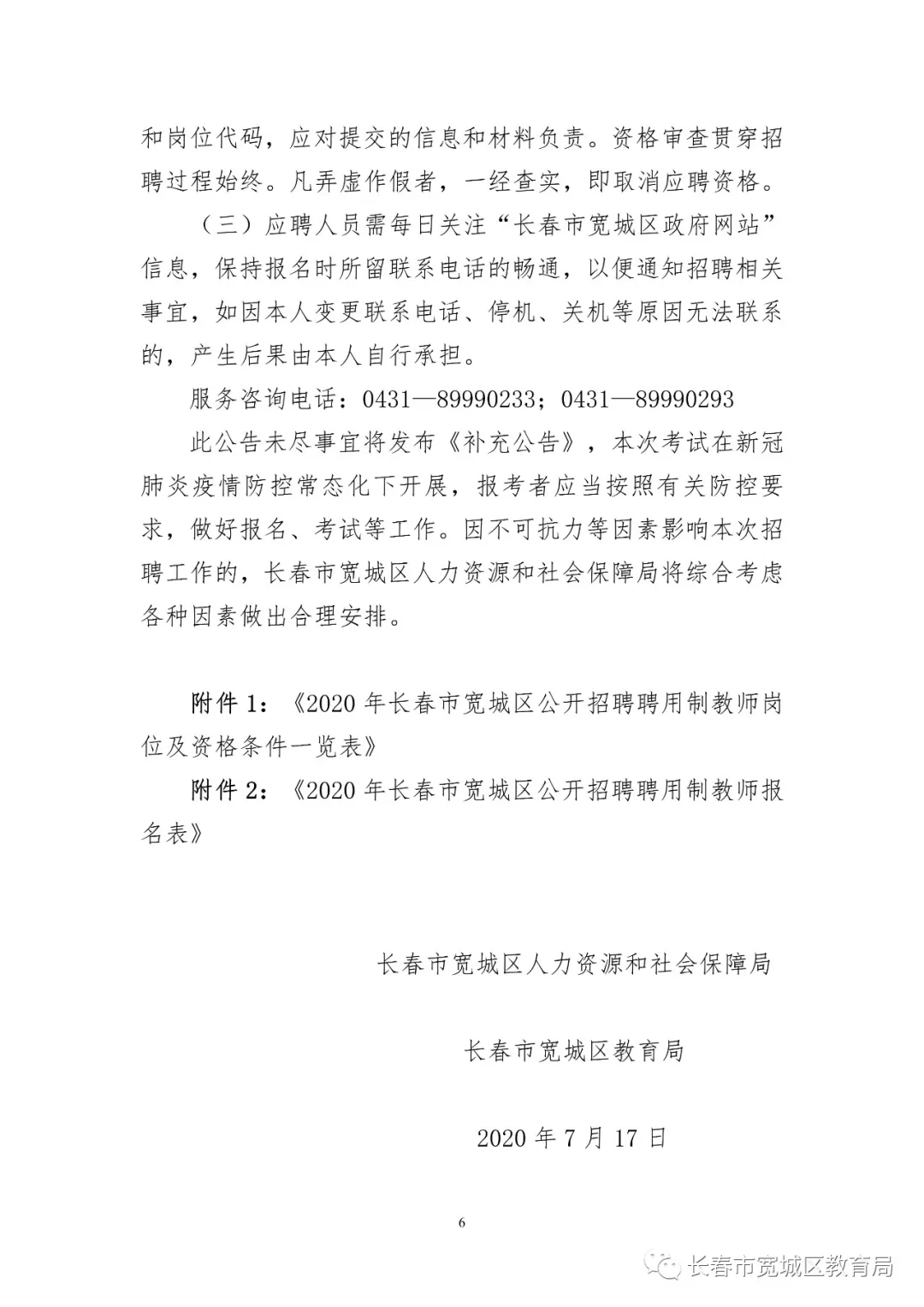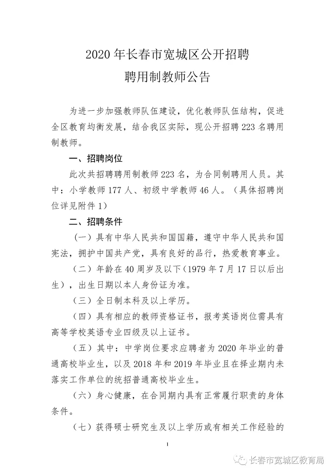 2020年长春市宽城区公开招聘聘用制教师公告 来源:就业工作 2020/07/17 附表见附件。 附件下载: P020200717628114194937.doc(已下载次) P020200717628114042239.xls(已下载次)