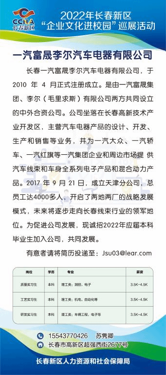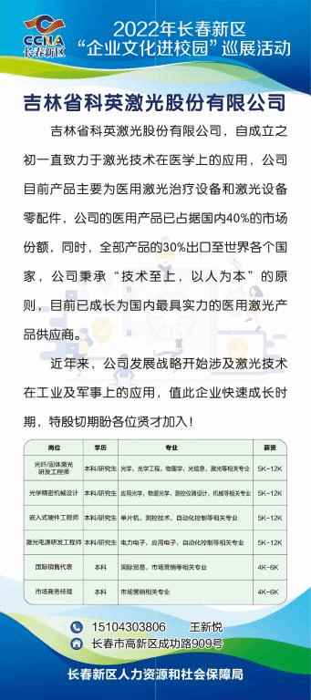 为促进2023届毕业生积极就业,太阳集团城娱8722与长春新区人力资源和社会保障局再次合力举办招新推送活动,让毕业生可以拥有更充足的就业机会,主办方提供以下企业招聘信息,希望各位毕业生能够积极就业,摆正好心态,迎接美好的未来。