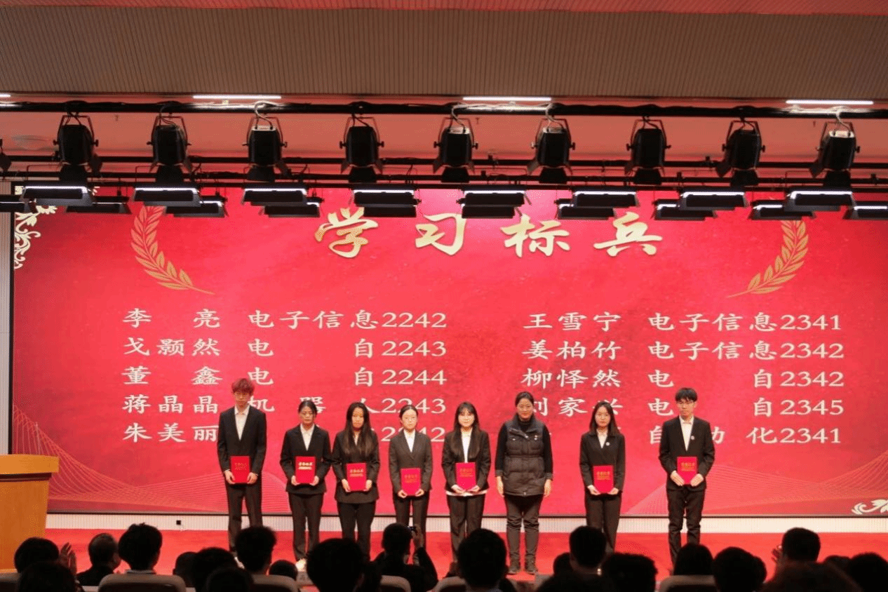 大会第四项,由学院党委书记鲍艳老师致辞。鲍书记希望受表彰的集体和个人,要戒骄戒躁,再接再厉,再创佳绩。全体学生要以先进为榜样,踔厉奋发,笃行不怠。继承和发扬"一二九"运动爱国主义精神,弘扬"博学笃志,匠心筑品"的电信精神,齐心协力、求真务实、锐意进取。并对新时代青年提出以下三点希望:一是要润德身心,绽放全面风采。二是要勤学不辍,坚守学习初心。三是要志存高远,涵养家国情怀,将个人理想融入国家发展大局,争做德智体美劳全面发展的社会主义建设者和接班人。